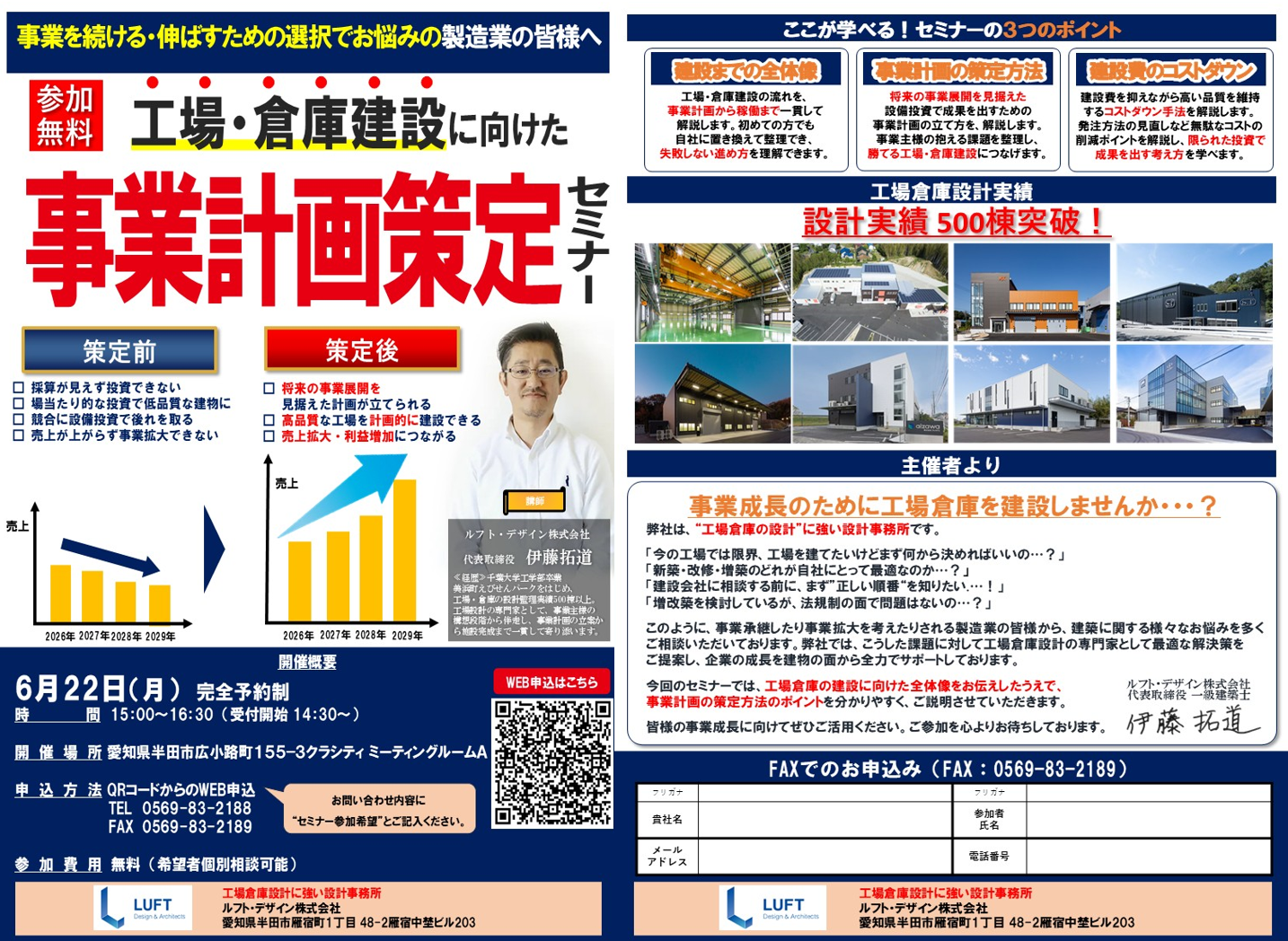 工場・事務所の建設において、弊社が行った設計のポイントは下記です。